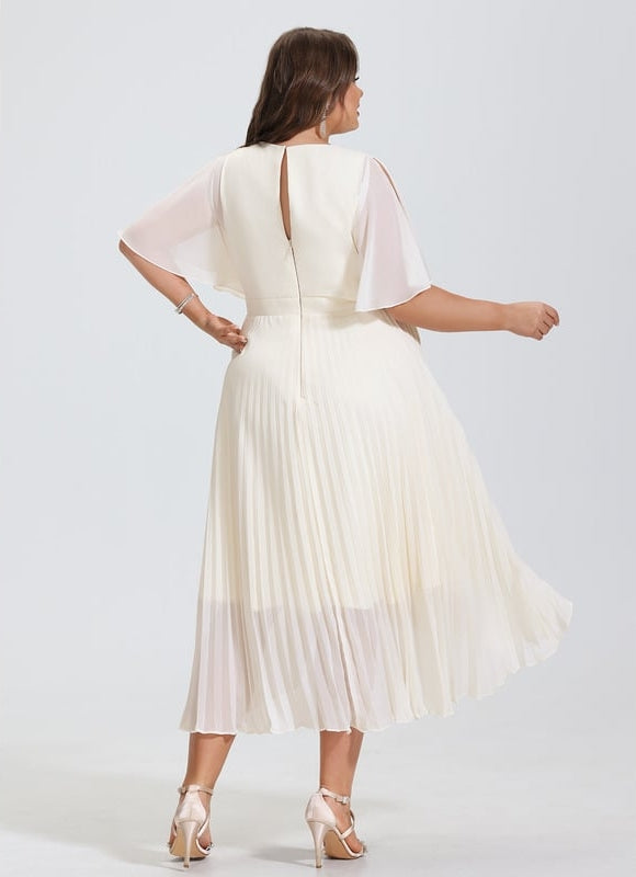 Cette merveilleuse Robe Trapèze Céleste Envolée est confectionnée en mousseline de haute qualité, offrant une sensation de douceur incomparable sur la peau et une légèreté qui vous fera presque flotter. Sa coupe trapèze universellement flatteuse s'adapte à toutes les silhouettes, soulignant délicatement la taille avant de s'évaser avec un mouvement gracieux. Le col rond classique apporte une touche d'élégance intemporelle, tandis que les manches flottantes et l'ourlet asymétrique (plus court à l'avant, plus long à l'arrière) créent cet effet d'« envolée » spectaculaire qui donne son nom à la robe. Les détails plissés, minutieusement travaillés sur la jupe, ajoutent une texture riche et un dynamisme visuel captivant. Pour un enfilage facile et un ajustement parfait, la robe est dotée d'un zip arrière discret.