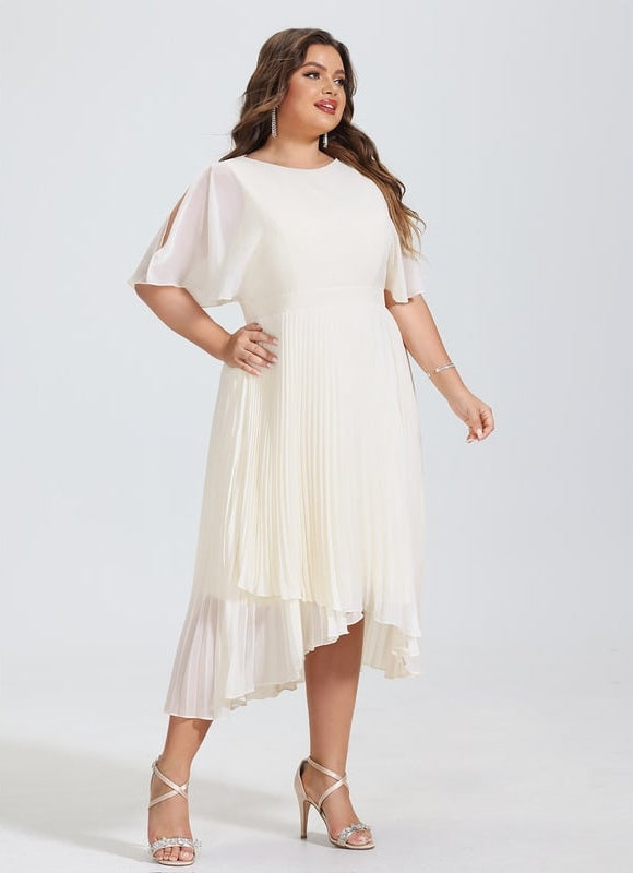 - Détails Raffinés : Les plissés délicats et l'ourlet asymétrique ajoutent une touche de sophistication moderne et unique.