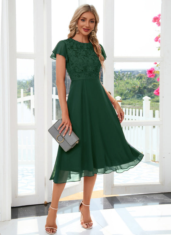 Cette Robe Trapèze Élégance Aérienne est confectionnée dans une mousseline de haute qualité, un tissu réputé pour sa légèreté et son tombé impeccable. La coupe trapèze, intemporelle et universellement flatteuse, met en valeur toutes les morphologies en soulignant délicatement la taille avant de s'évaser avec élégance. Le col rond classique offre une touche de sophistication discrète, tandis que les manches courtes à volants ajoutent une note romantique et aérienne à l'ensemble. Le corsage en délicate dentelle apporte une dimension supplémentaire de charme et de sophistication. Entièrement doublée pour une opacité parfaite et un confort optimal, cette robe vous permet de vous déplacer en toute sérénité. Le zip arrière assure un enfilage facile et un ajustement parfait, garantissant une silhouette épurée et élégante de dos comme de face.