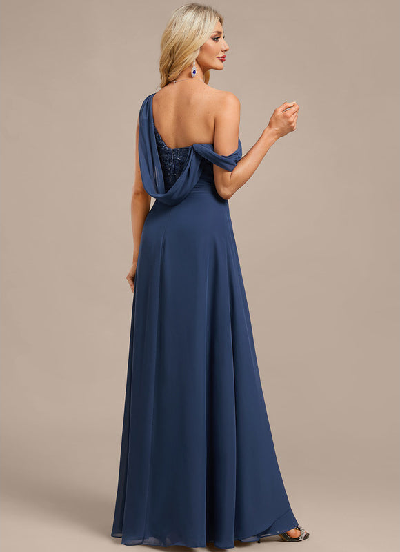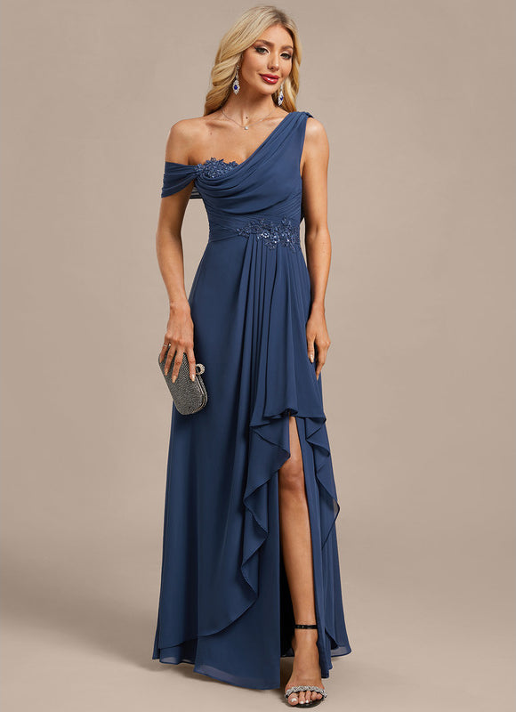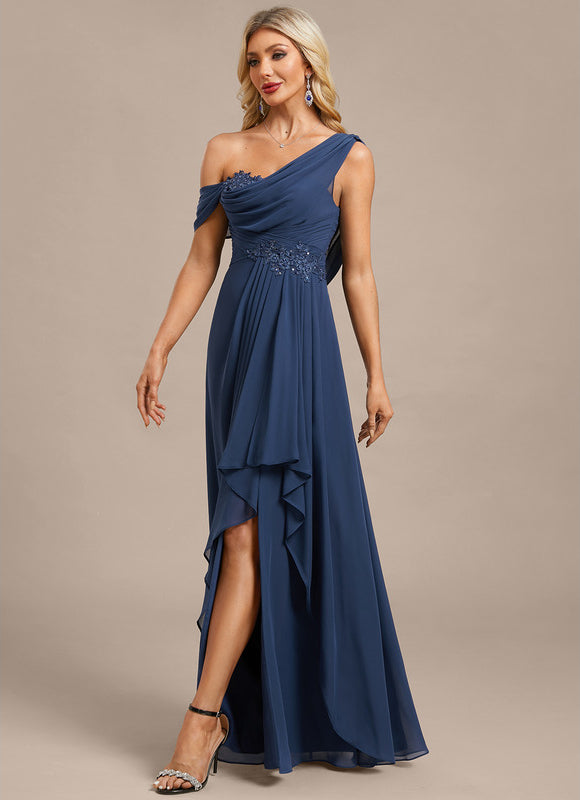 Imaginez-vous rayonner lors de vos événements les plus chics et mémorables. Cette robe longue en mousseline, d'un bleu marine profond, est l'incarnation même de la sophistication moderne. Sa coupe trapèze flatte toutes les silhouettes, vous offrant une allure fluide et gracieuse. Le col asymétrique audacieux et la fente haute sur la jambe ajoutent une touche de sensualité et de dynamisme, vous permettant de vous déplacer avec aisance et confiance. C'est la pièce maîtresse idéale pour celles qui cherchent à allier confort, élégance et originalité pour des soirées inoubliables.