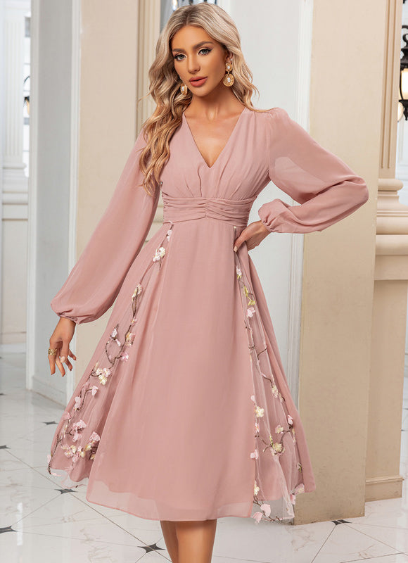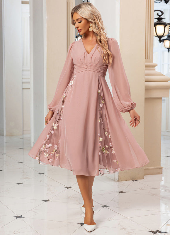 Plongez dans le charme de cette robe unique, où chaque détail a été pensé pour sublimer votre silhouette. Le tissu en mousseline, léger et fluide, promet une silhouette aérienne et un mouvement gracieux à chaque pas. Son élégant col en V met en valeur votre décolleté avec subtilité, tandis que les détails plissés au niveau de la taille créent une forme trapèze qui épouse et flatte toutes les morphologies. La longueur midi ajoute une touche de sophistication intemporelle, idéale pour le Printemps, l'Automne ou l'Hiver. Imaginez-vous, baignée d'une lumière naturelle, avec les broderies florales qui dansent au rythme de vos mouvements, vous offrant une aura de grâce et de fraîcheur incomparable. Entièrement doublée pour un confort optimal et une opacité parfaite, cette robe est aussi pratique qu'élégante grâce à son zip arrière discret.