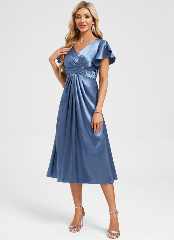 Imaginez-vous glissant dans cette magnifique Robe Trapèze Élégance Océanique, une pièce qui capture la grâce et la fluidité des vagues. Conçue pour la femme moderne qui ne transige pas sur le style ni le confort, cette robe midi en satin luxueux est votre alliée parfaite pour toutes les occasions spéciales. Son tissu doux et brillant épouse délicatement votre silhouette, tandis que son col en V flatteur et ses détails à volants ajoutent une touche de sophistication et de légèreté. Que ce soit pour un mariage, une soirée élégante ou un événement chic, cette robe vous assure une allure inoubliable et une confiance rayonnante. Laissez-vous envelopper par son charme intemporel et faites sensation, où que vous alliez.