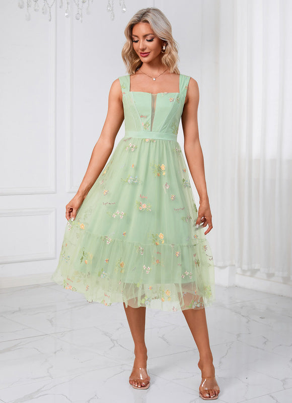 Cette Robe Trapèze Émeraude Lumineuse n'est pas seulement belle, elle est aussi incroyablement agréable à porter. Confectionnée dans un tulle aérien et léger, elle offre une sensation de douceur sur la peau et une fluidité qui accompagne chacun de vos pas. Le col cœur met subtilement en valeur votre décolleté, tandis que la doublure complète assure une opacité parfaite et un confort absolu, vous permettant de vous sentir à l'aise et en confiance toute la journée ou toute la nuit. Les motifs floraux brodés ajoutent une dimension artistique et unique à la robe, la transformant en une véritable œuvre d'art portable. La fermeture éclair discrète au dos garantit un enfilage facile et un ajustement parfait.