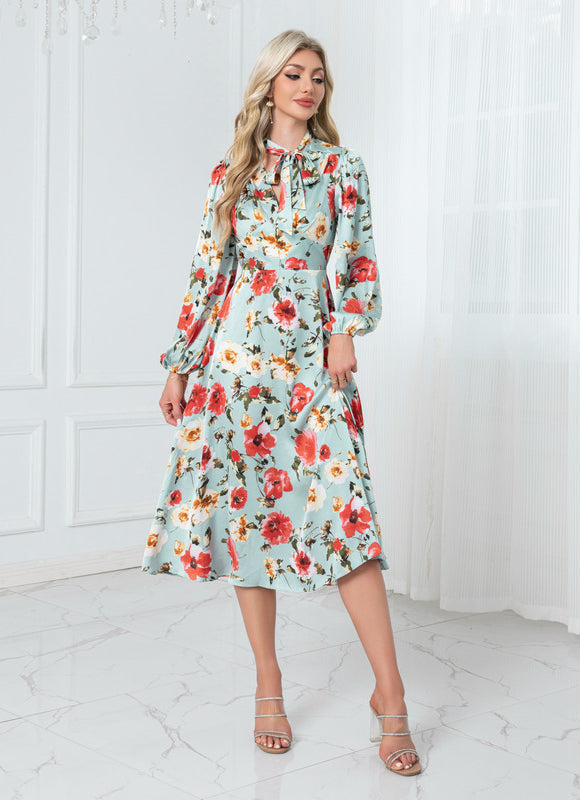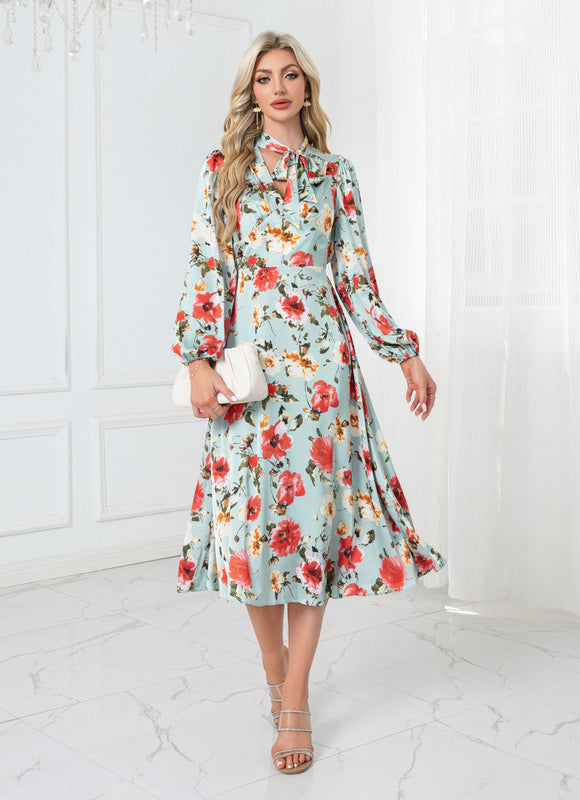 Cette robe incarne la parfaite harmonie entre une coupe flatteuse et un design artistique. Sa forme trapèze élégante assure une silhouette fluide et confortable, s'adaptant à toutes les morphologies et offrant une liberté de mouvement appréciable. Le motif floral, travaillé comme une aquarelle délicate, apporte une touche de poésie et d'originalité, faisant de chaque robe une œuvre d'art portable. La longueur midi est idéale pour une allure sophistiquée, tandis que le col V, rehaussé par des liens subtils, permet de varier les styles, du plus décontracté au plus chic. De plus, sa taille élastique garantit un ajustement parfait et un confort durable tout au long de la journée ou de la soirée.
