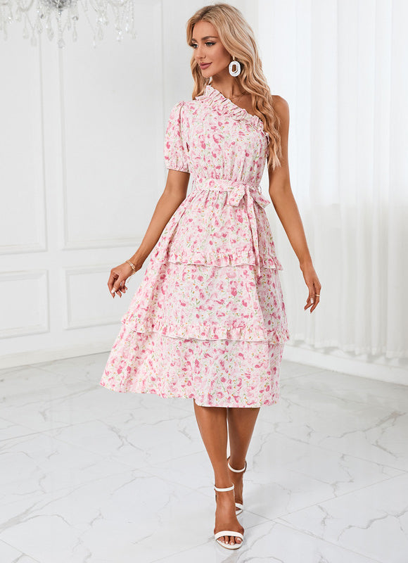 Cette robe n'est pas seulement une pièce de vêtement, c'est une invitation à la féminité et à la liberté. Son tissu en polyester de qualité supérieure assure une fluidité et une légèreté remarquables, vous offrant une sensation agréable tout au long de la journée. La coupe trapèze, intemporelle et flatteuse, épouse délicatement votre silhouette sans la contraindre, tandis que les volants et les motifs floraux apportent une touche de romantisme et de gaieté. Le décolleté asymétrique est le détail audacieux qui fait toute la différence, ajoutant une note sophistiquée et moderne à cette pièce déjà irrésistible. Facile à enfiler grâce à son zip latéral discret, elle sera rapidement votre favorite pour toutes les occasions ensoleillées.
