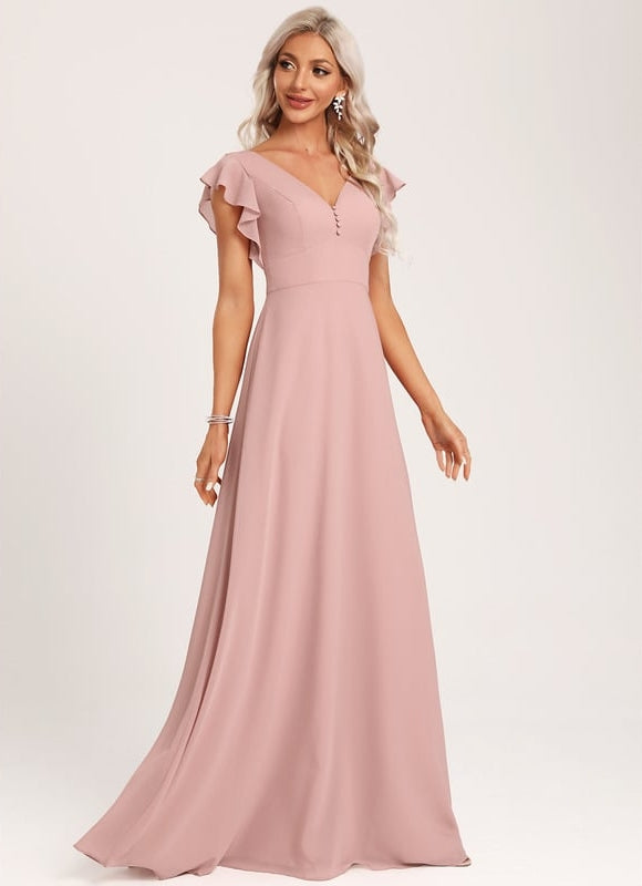 Chaque détail de cette robe a été pensé pour sublimer votre silhouette. Son élégant col en V met en valeur votre décolleté avec subtilité, tandis que les délicats détails à volants sur les épaules ajoutent une touche de féminité et de romantisme. La fente discrète sur la jambe révèle juste ce qu'il faut, ajoutant une note de sensualité et facilitant vos mouvements pour danser toute la nuit. Avec son dos en V raffiné, cette robe est aussi belle de dos que de face, assurant une allure impeccable sous tous les angles. Son soutien-gorge intégré vous offre un maintien parfait et un confort absolu, vous permettant de profiter pleinement de votre événement sans souci.