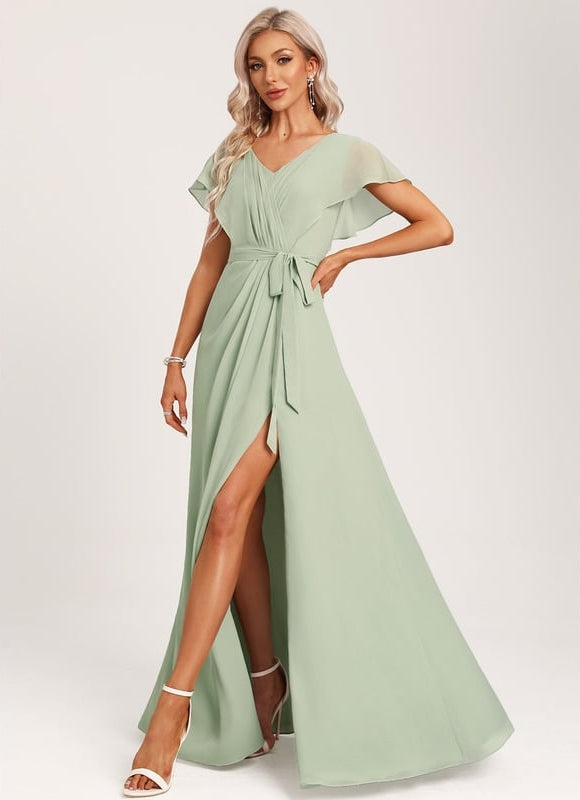 Laissez-vous séduire par la texture douce et la fluidité incomparable de sa mousseline de haute qualité. Chaque détail a été pensé pour votre bien-être et votre allure. Le col V délicat sublime le décolleté avec élégance, tandis que les manches volantes apportent une touche de féminité romantique et aérienne, idéales pour masquer les bras tout en légèreté. La ceinture à nouer intégrée permet de cintrer la taille à votre guise, créant une silhouette harmonieuse et personnalisée. Avec son dos en V et son soutien-gorge intégré, cette robe vous assure un maintien parfait et une confiance inébranlable, vous permettant de danser et de vous mouvoir avec une aisance totale. C'est la promesse d'une soirée inoubliable où vous serez la star.