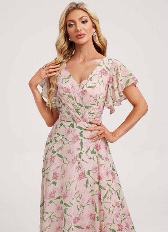 Vous rêvez d'une tenue qui allie à la perfection grâce et légèreté pour vos événements spéciaux ? Notre magnifique Robe Trapèze Mousseline Fendue est faite pour vous. Imaginez-vous glisser dans cette pièce aérienne, son tissu en mousseline caressant délicatement votre peau tandis que sa coupe trapèze fluide vous offre une liberté de mouvement absolue. Son col en V élégant, son dos en V et ses manches à volants ajoutent une touche de sophistication, faisant de cette robe le choix idéal pour les mariages, les garden-parties ou toute occasion où vous souhaitez briller sans effort.