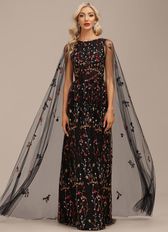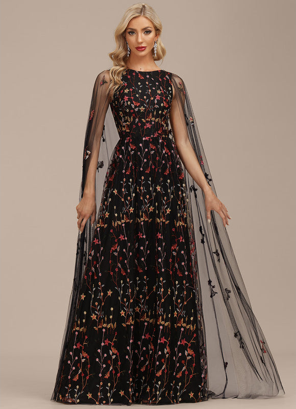 Imaginez-vous sous les feux des projecteurs, enveloppée dans la grâce et le mystère. Notre Robe Trapèze Nocturne Florale est conçue pour faire de chaque soirée un moment inoubliable. Confectionnée en dentelle délicate, cette robe épouse subtilement votre silhouette grâce à sa forme trapèze flatteuse, tout en offrant un confort exceptionnel. Ses manches longues uniques, qui rappellent une cape aérienne, ajoutent une touche de sophistication et de mouvement à chacun de vos pas. Les broderies florales colorées, parsemées avec art sur le tissu noir, captent la lumière et révèlent toute la richesse de votre personnalité, faisant de cette robe le choix parfait pour vos événements les plus prestigieux.