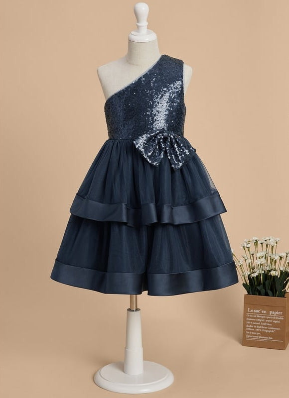 - Détails décoratifs : Un charmant nœud pailleté à la taille qui souligne délicatement la silhouette.