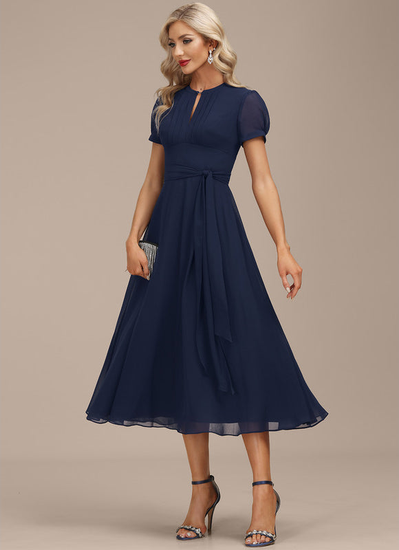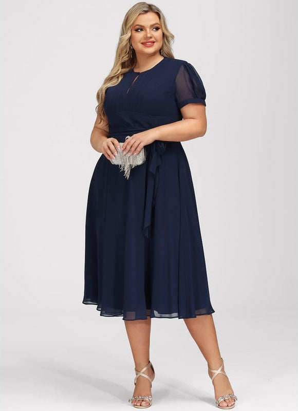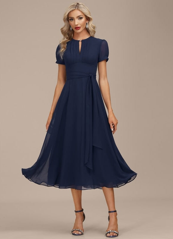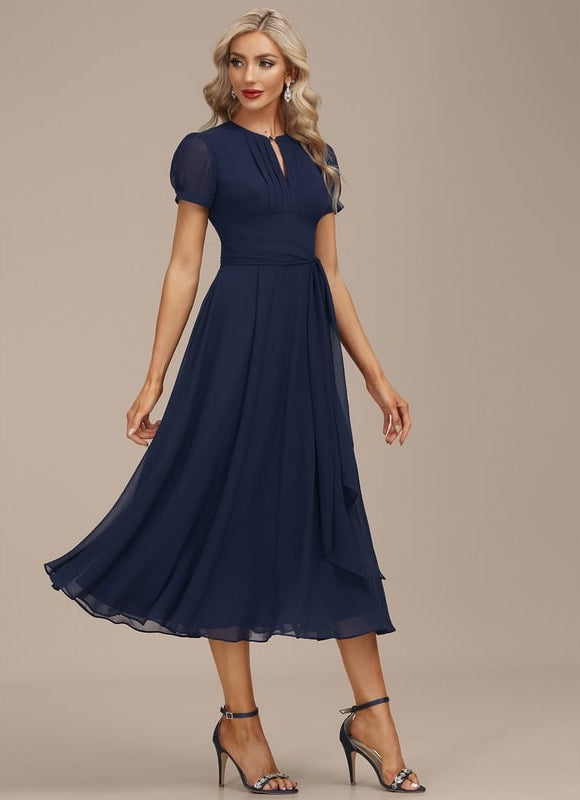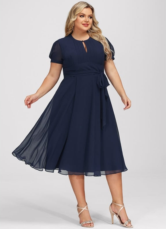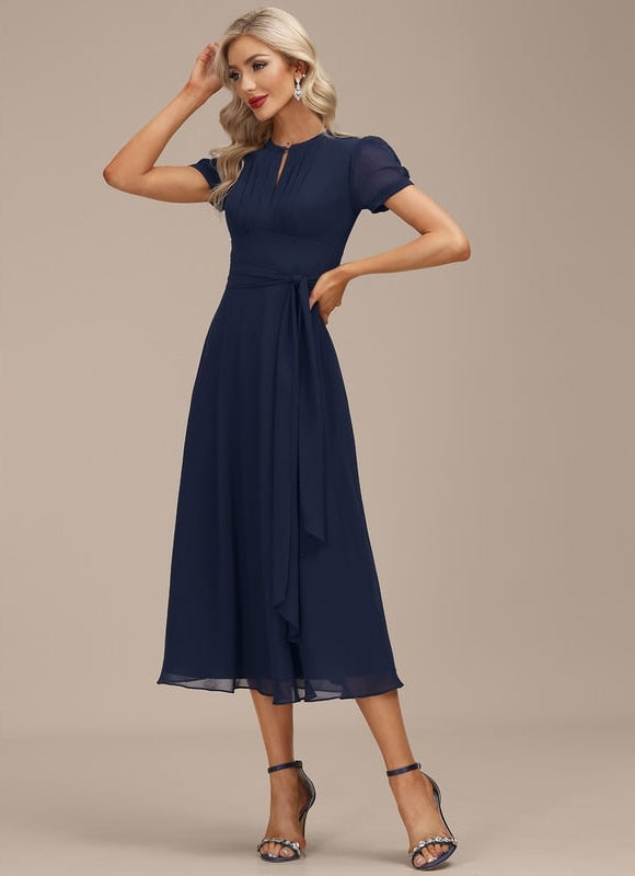 - Détails décoratifs : Subtils plissés sur le buste et une ceinture/écharpe adaptable pour une silhouette personnalisée.