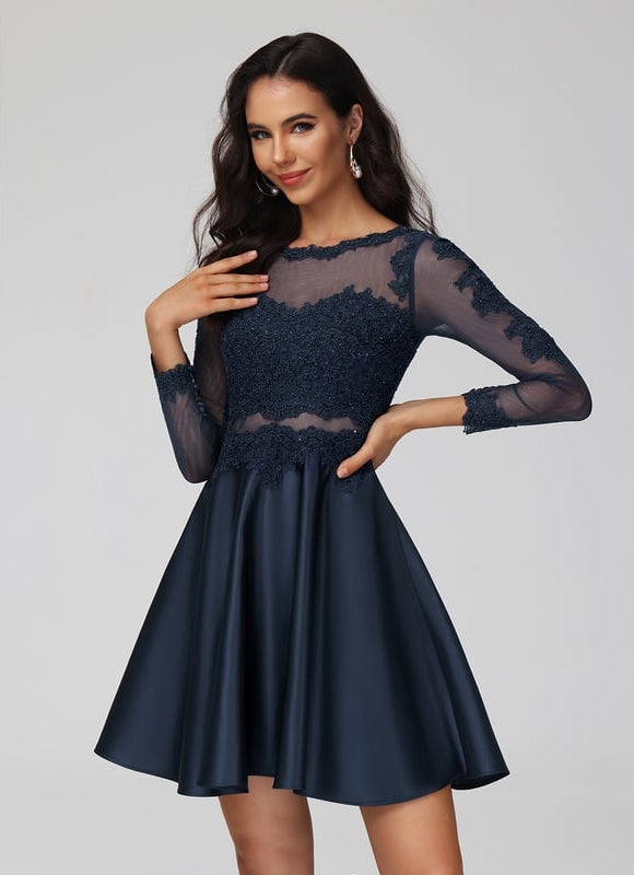 - Détails en dentelle exquise : Le bustier et les manches longues en dentelle délicatement travaillée apportent une touche de glamour et de sophistication.