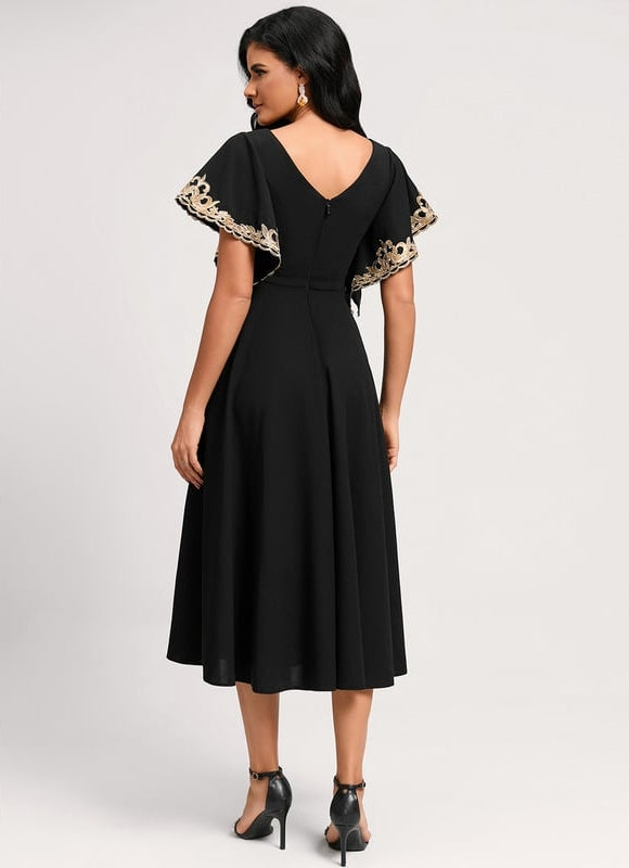 Cette Robe Trapèze Pour Ronde n'est pas seulement un plaisir pour les yeux, elle est pensée dans les moindres détails pour votre bien-être. Son élégant col en V mettra en valeur votre décolleté avec subtilité, tandis que le dos également en V ajoute une touche de sophistication inattendue et moderne. La longueur midi est parfaitement équilibrée pour allonger la silhouette et s'adapter à diverses occasions, des plus formelles aux plus décontractées. Laissez-vous séduire par les magnifiques appliques de dentelle finement brodées sur les manches évasées, qui apportent une touche d'originalité et de délicatesse, transformant cette robe en une véritable pièce d'exception. De plus, sa doublure complète vous assure une opacité parfaite et une tranquillité d'esprit absolue tout au long de la journée ou de la soirée.