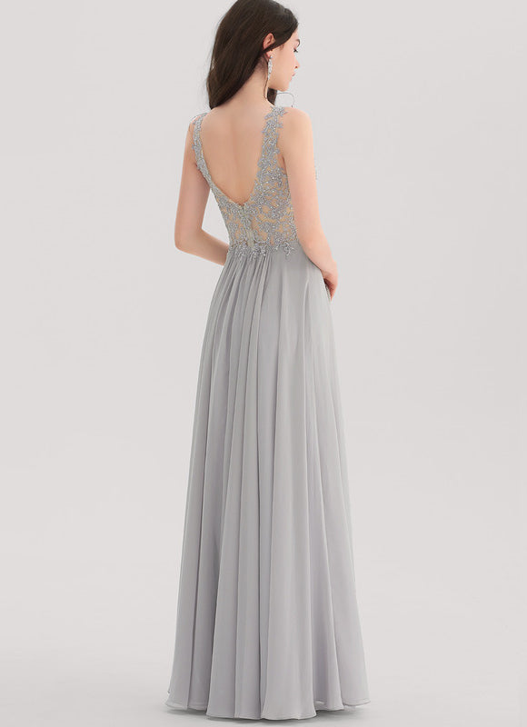 Cette pièce maîtresse de votre garde-robe de soirée combine à merveille esthétique et praticité. La coupe trapèze, également appelée A-line, est universellement flatteuse, offrant une silhouette élégante et décontractée qui convient à toutes les morphologies. Le col en V plongeant et le dos en V assorti ajoutent une touche de sensualité raffinée, sans jamais compromettre l'élégance. Les strass, véritables points lumineux, transforment la mousseline grise en un ciel étoilé, captant la lumière et attirant l'attention sur les détails exquis du corsage. Et pour une tranquillité d'esprit totale, cette robe intègre un soutien-gorge avec armatures, vous assurant un maintien parfait et un confort optimal tout au long de la soirée, sans avoir besoin de lingerie supplémentaire.