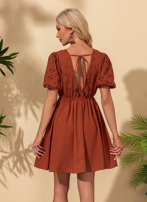 - Détails Décoratifs : Magnifique broderie anglaise sur le buste et les manches courtes.
