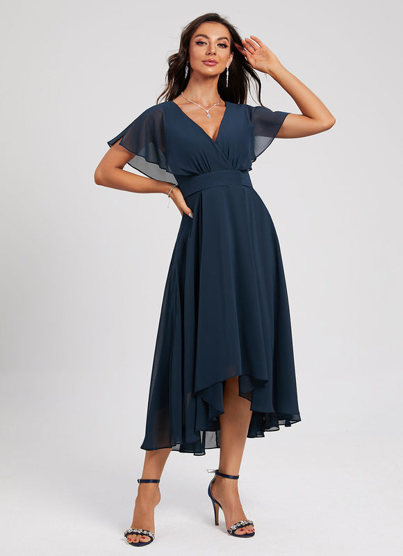 - Détails raffinés : Des manches courtes aériennes et un ourlet asymétrique pour une touche de modernité et de grâce.