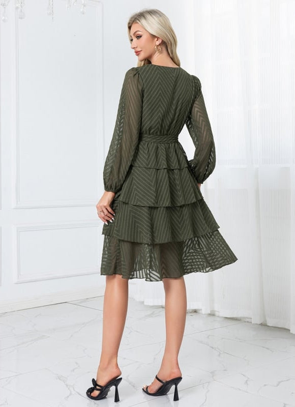 Préparez-vous à faire sensation avec notre magnifique Robe Trapèze Volants Bourgogne, l'indispensable de votre garde-robe pour les saisons froides. Conçue pour la femme moderne qui recherche à la fois confort et raffinement, cette robe midi en mousseline légère et fluide vous enveloppe d'une douceur agréable tout en vous offrant une silhouette gracieuse. Ses charmants volants apportent un mouvement aérien et une touche de féminité, transformant chaque pas en une danse subtile. Parfaite pour une journée au bureau, un déjeuner entre amies ou une soirée spéciale, cette robe polyvalente vous assure un look impeccable et sans effort.